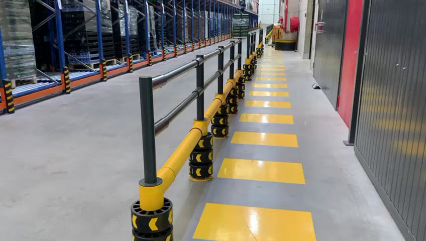 With a standardized height of 43 5⁄16 inches, this guardrail ensures essential segregation to protect personnel in areas with low-speed vehicular or forklift traffic. The lower section absorbs high-energy impacts, while the upper section enhances protection and security.